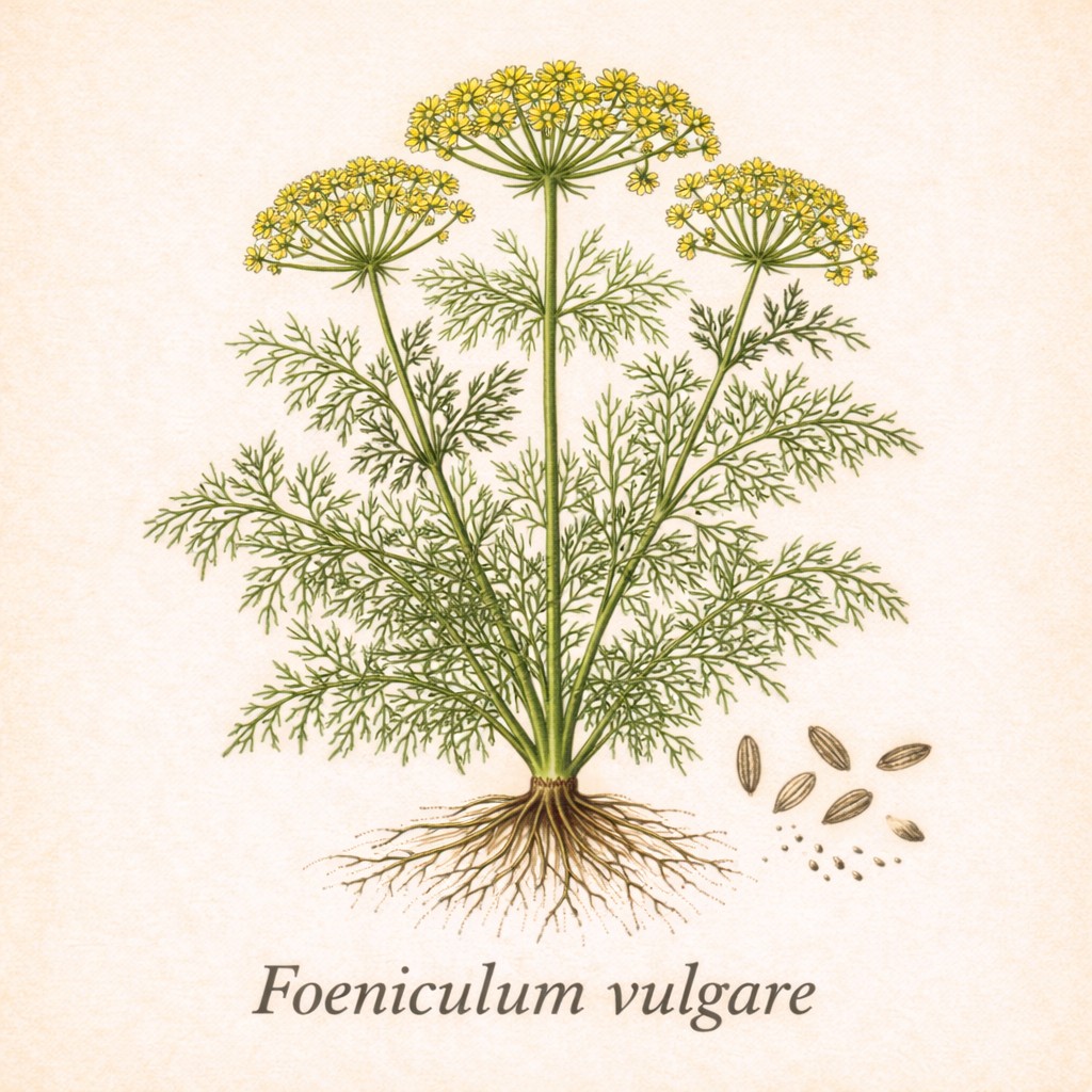 Fenchel gehört zum Verdauungstrio Anis – Fenchel – Kümmel. Er wirkt verdauungsfördernd, appetitanregend und krampflösend.